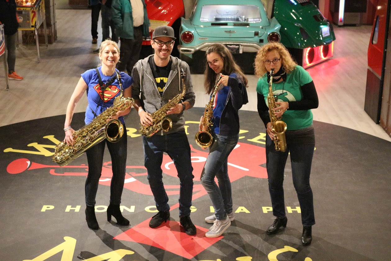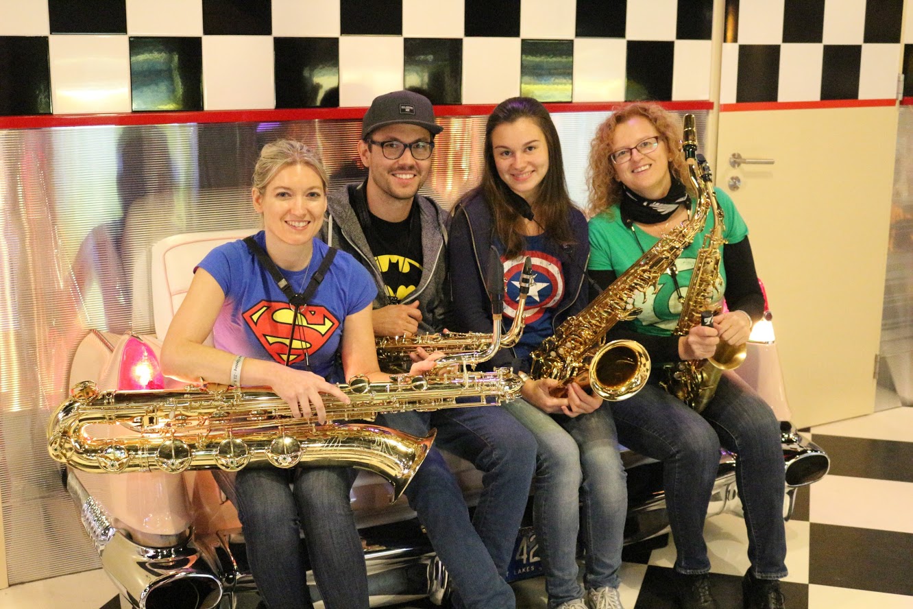 We are four saxophone lovers, breathing new life into music from movies, TV series, video games but also standards and x-mas carols. Sometimes, we invite other people, to support us, e.g. Daredevil on Percussion.